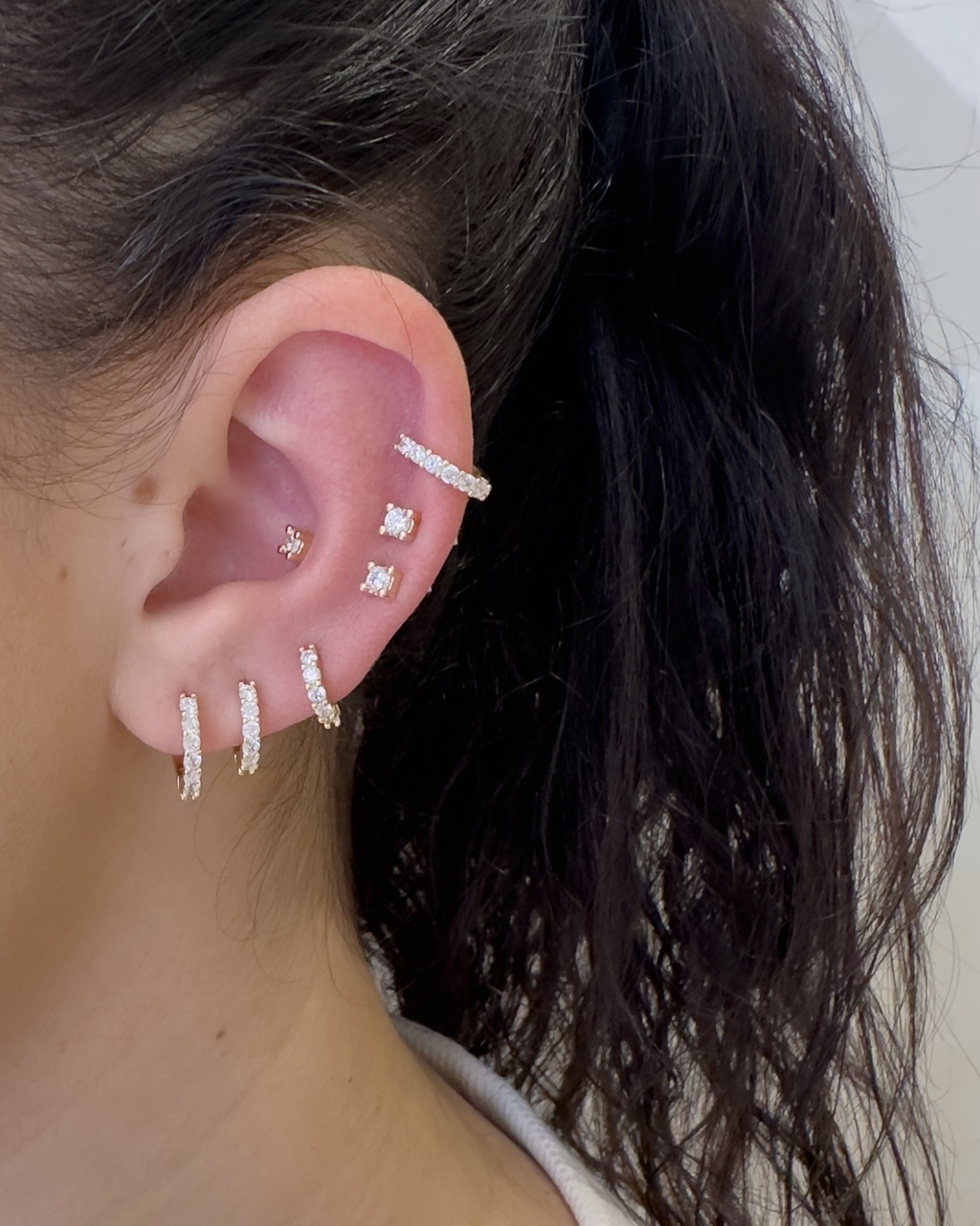 Argola click cravejada com zircônia cristal, banhada a 7 milésimos de ouro 18k.