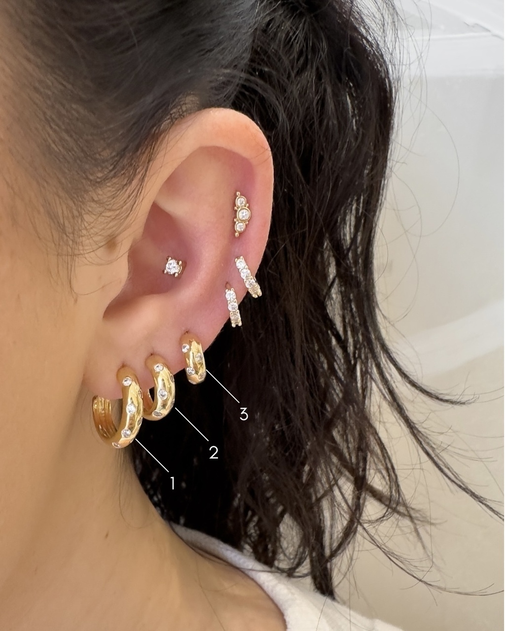 Argola tubo com zircônias brancas, banhada a 7 milésimos de ouro 18k.
